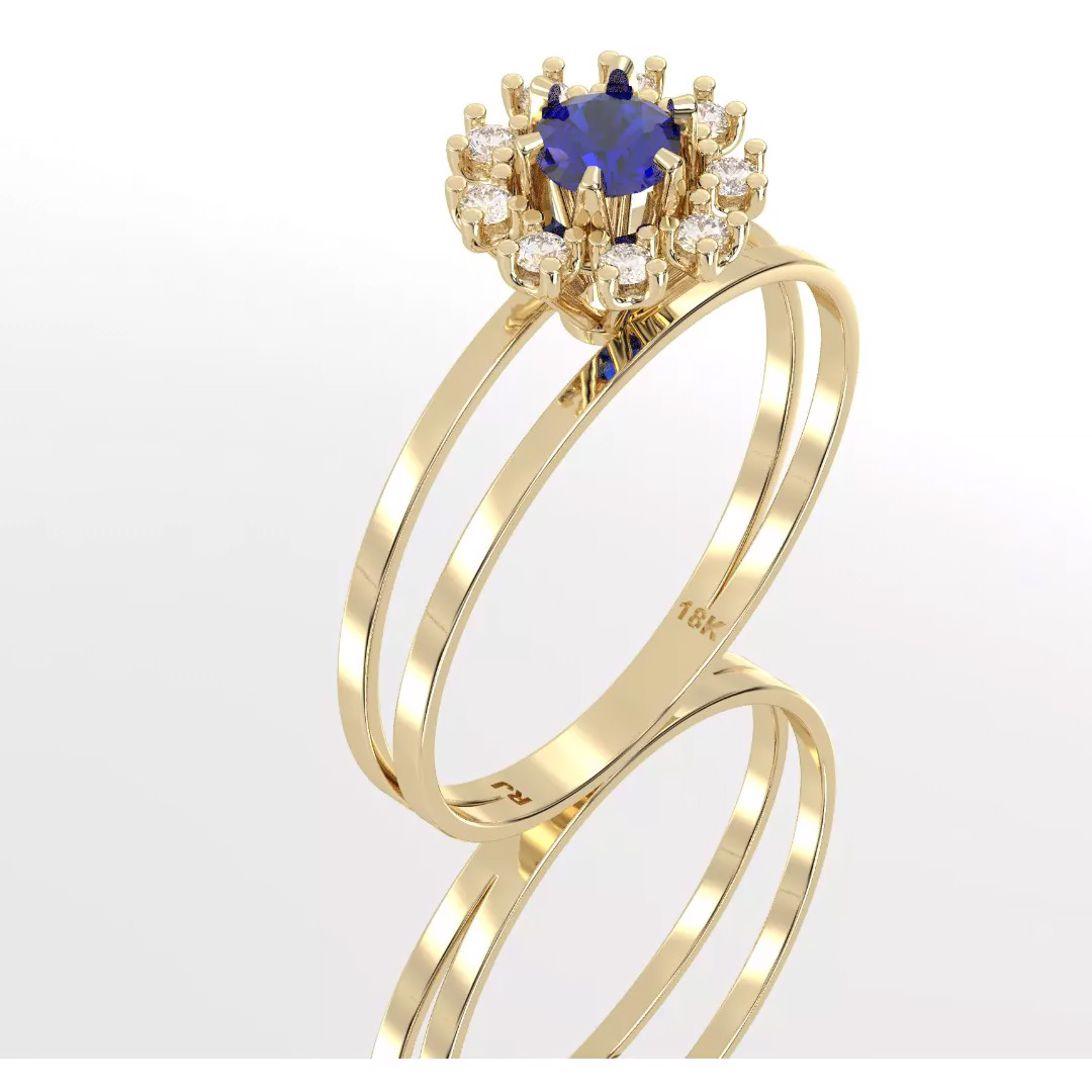Anel de Formatura Gold Cravejado com Safira e Brilhantes