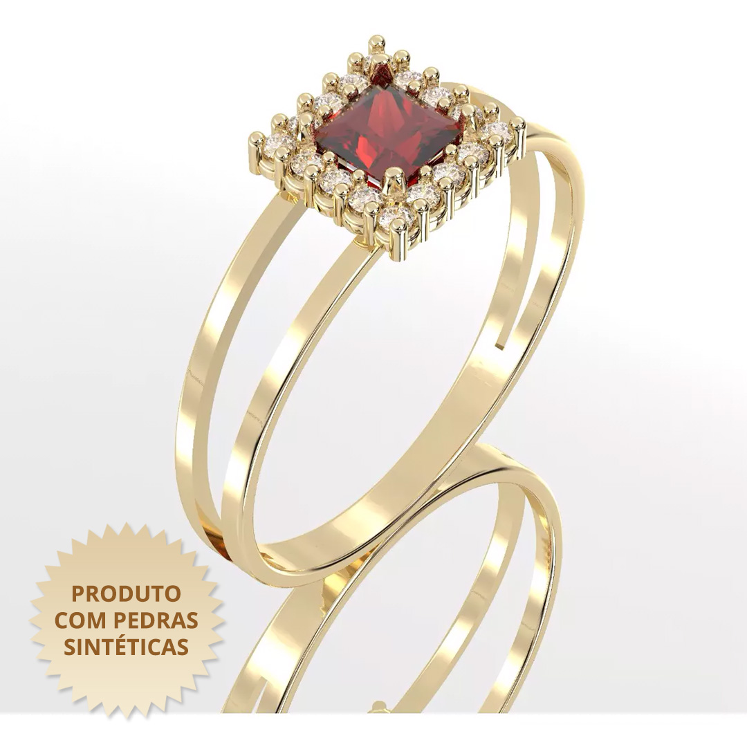 ANEL FEMININO FORMATURA DE OURO 18K QUADRADO
