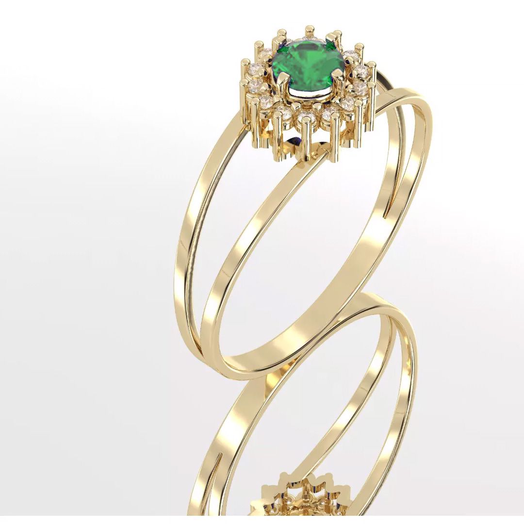 Anel de Formatura Precious Cravejado com Esmeralda e Brilhantes