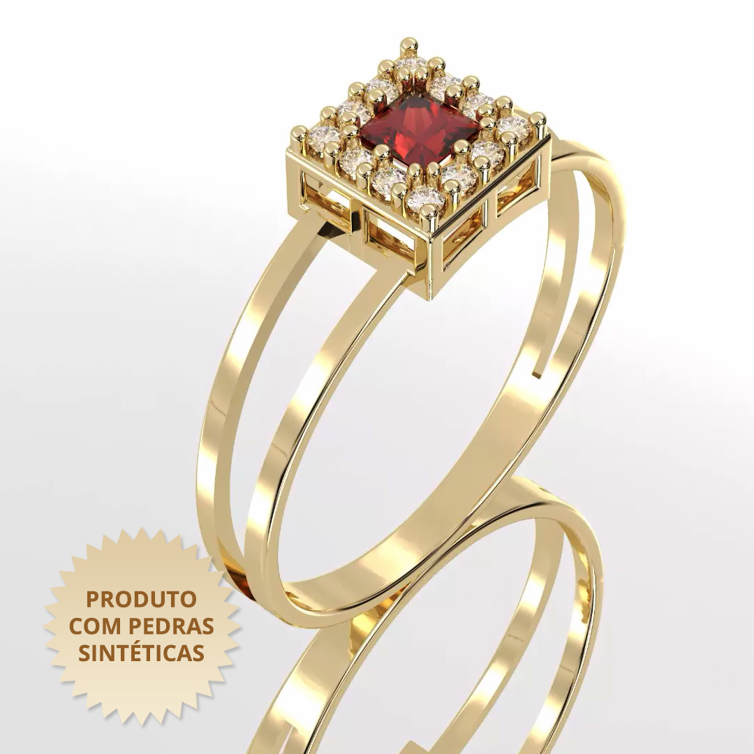 Anel de Formatura Spring Cravejado com Zircônia Vermelha e Zircônias Brancas