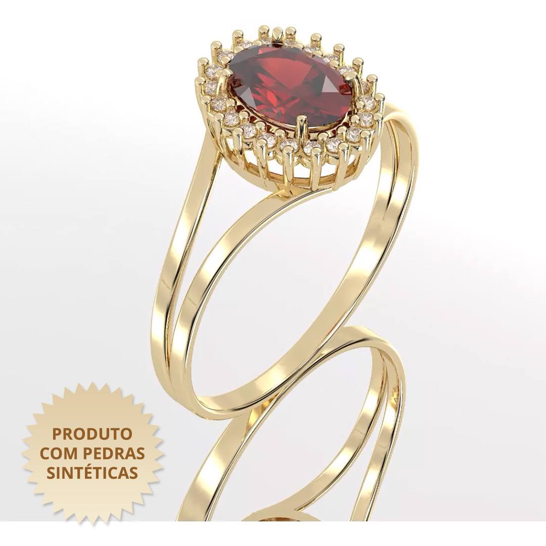 Anel Feminino Magic Cravejado com Zircônia Vermelha e Zircônias Brancas