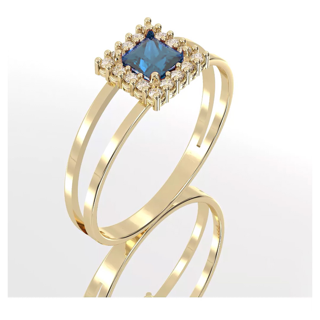 Anel Feminino Sterom Cravejado com Zafira e Brilhantes